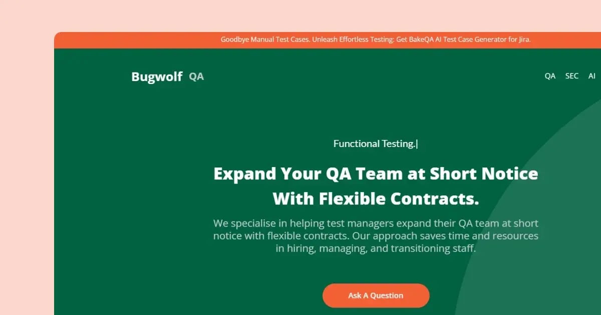 Bugwolf is a platform that provides on-demand quality assurance (QA) testing services, designed to help businesses scale their QA efforts quickly and efficiently. The platform offers flexible contracts, allowing companies to expand their QA teams at short notice, making handling large and small software development projects easier. Bugwolf focuses on enhancing digital quality through a range of testing services and expert QA analysts who work under client direction.