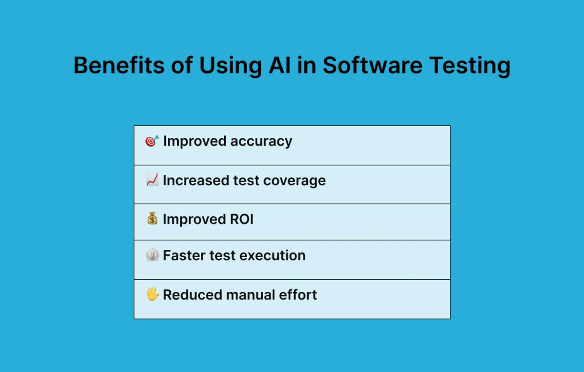 - Faster, more efficient testing: AI-based tools can automate much of the testing process, significantly reducing manual error and increasing testing speed.