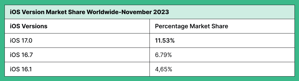 In 2016, Apple achieved a milestone of one billion devices sold. The numbers have only soared since then – reaching 1.5 billion in 2020, 1.8 billion in 2022, and hitting the impressive two billion mark in February 2023. With iPhones and iPads prevalent, iOS has become a significant player in the mobile landscape.