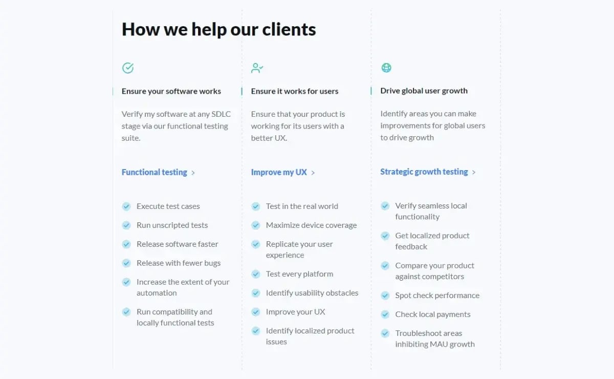 - Crowdsourced Testing: Leverage our global network of 90,000 professional testers to provide real-world feedback and extensive device coverage.