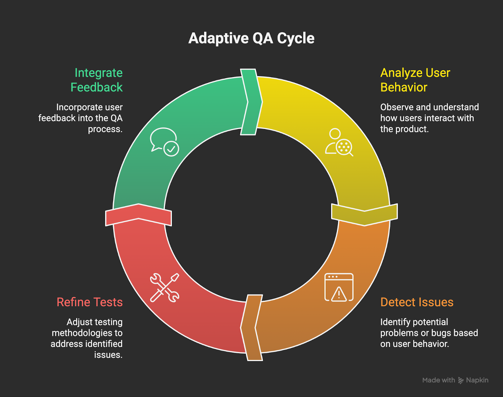 - Adapt coverage continuously: Update tests as user behavior changes, using generated inputs to simulate real-world scenarios and uncover hidden issues.