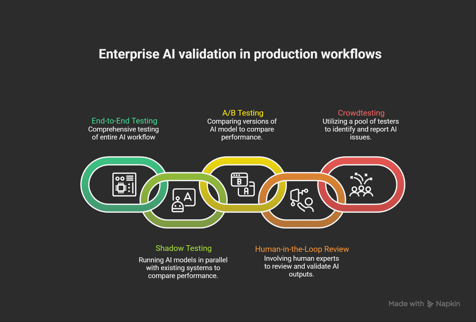 AI quality is shaped by how models behave within real enterprise systems, not just in isolation. To validate this, enterprises extend testing into production-like workflows.