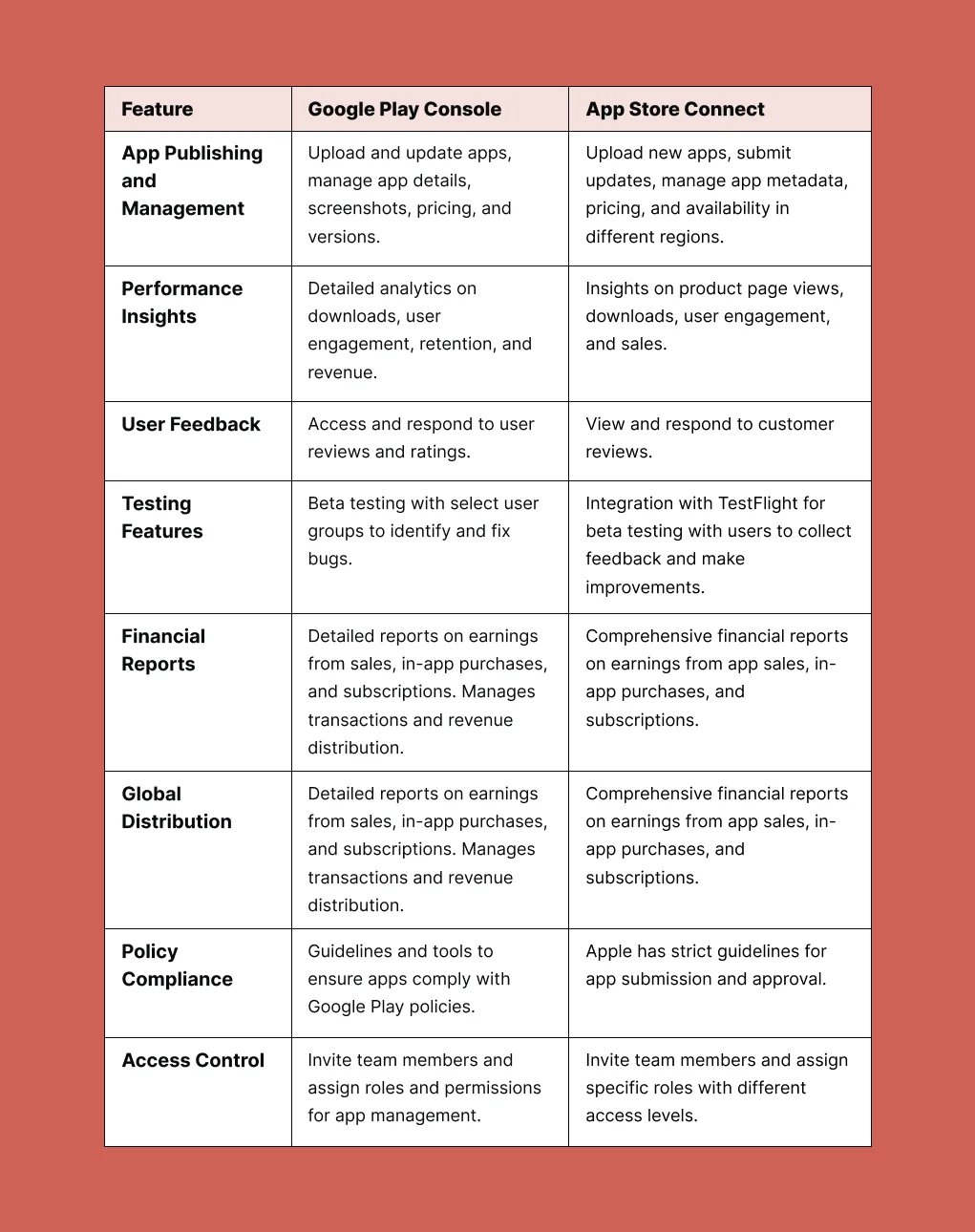 Play Console and App Store Connect provide a comprehensive set of tools for app management, performance monitoring, user engagement, and financial tracking.