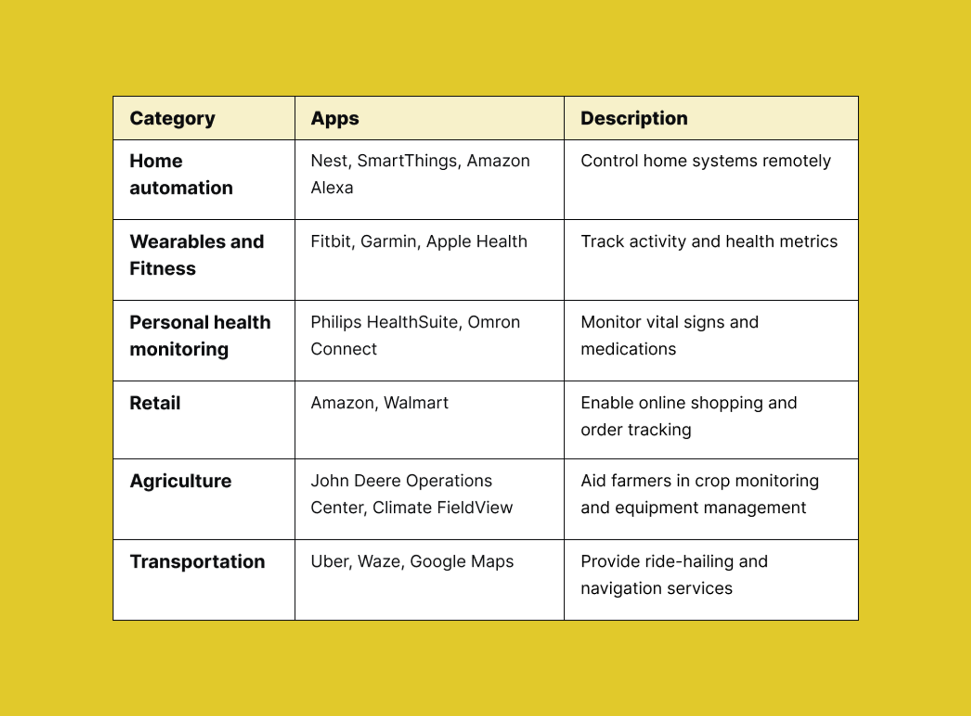 - Entertainment: Video players and interaction through messaging apps.
