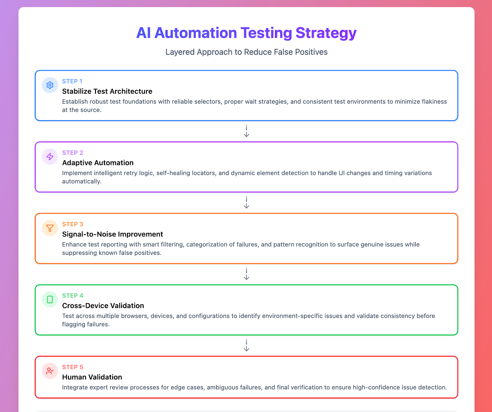 - Cross-device validation, resilient locators, and context-aware AI tests improve reliability and ensure automated results reflect the true user experience.