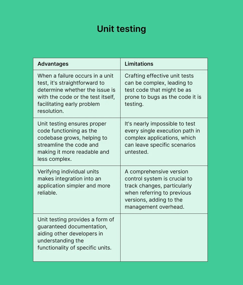 - Automated testing: Uses tools and scripts to automatically run test cases, increasing efficiency, especially for repetitive tasks.