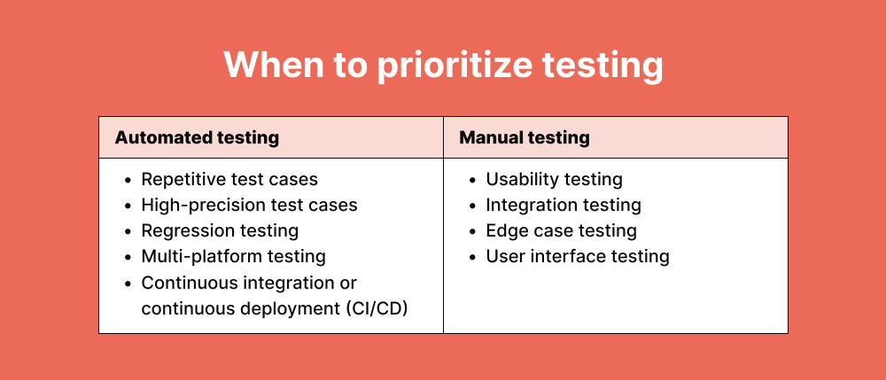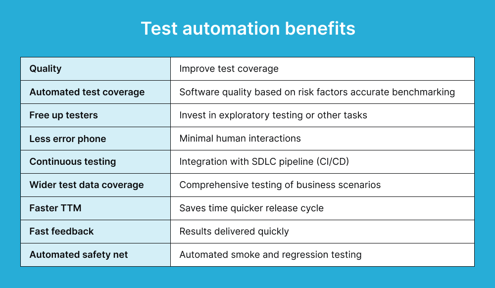 Manual testing, while thorough, is time-consuming and requires extensive labor. Automation, on the other hand, frees up engineers' time, allowing them to focus on resolving bugs discovered during testing.