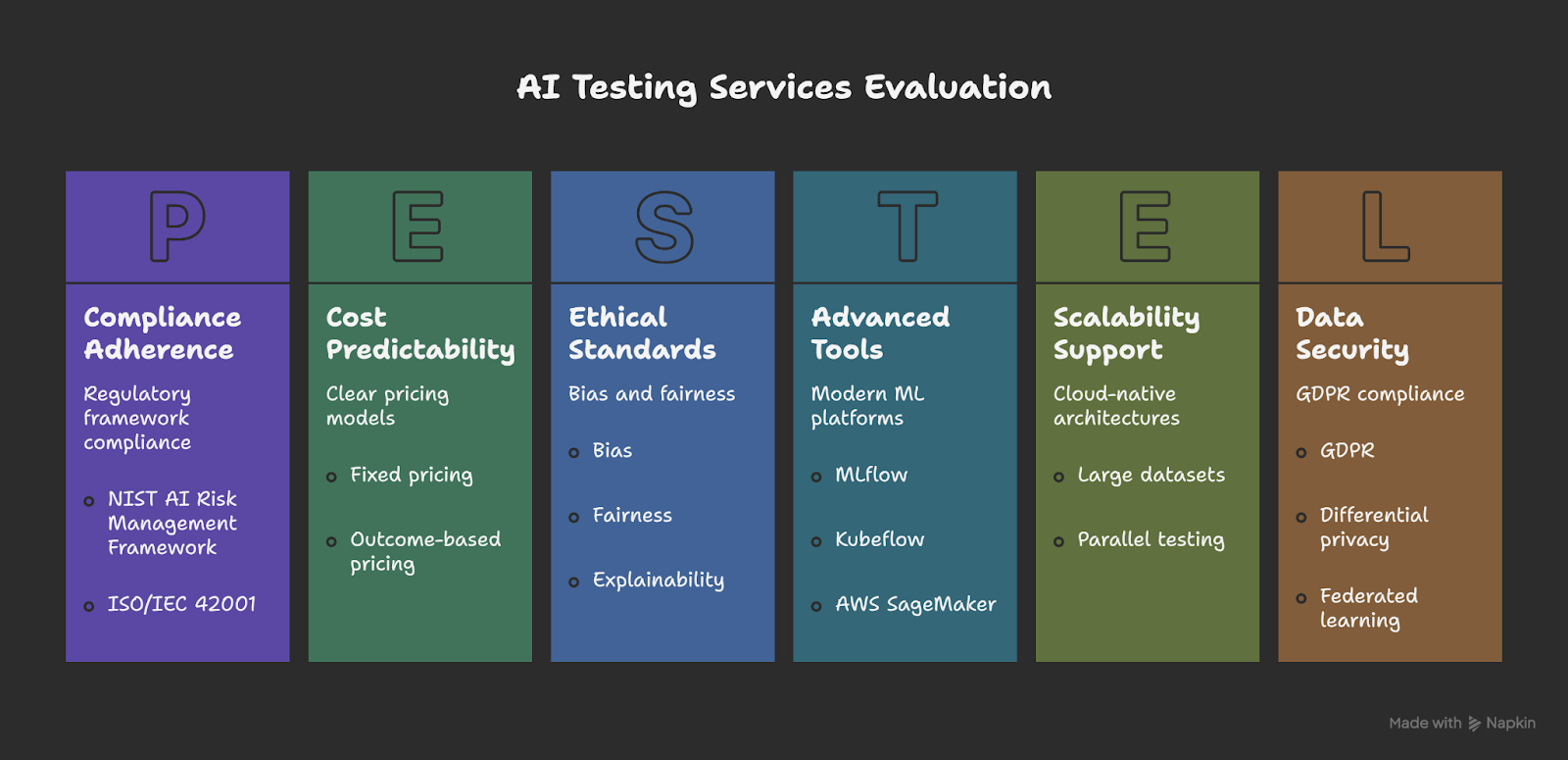 When evaluating AI testing services, it is important to understand how each aspect replaces manual testing, accelerates release velocity, and enhances model reliability.