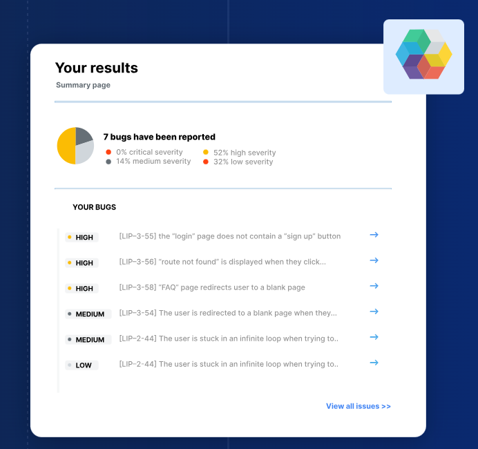 For example, during a major API transition for Facebook, our team helped scale test coverage dramatically. Within a single week, testers validated over 1000 apps and identified hundreds of bugs, providing actionable insights and helping ensure a smoother migration for developers.
