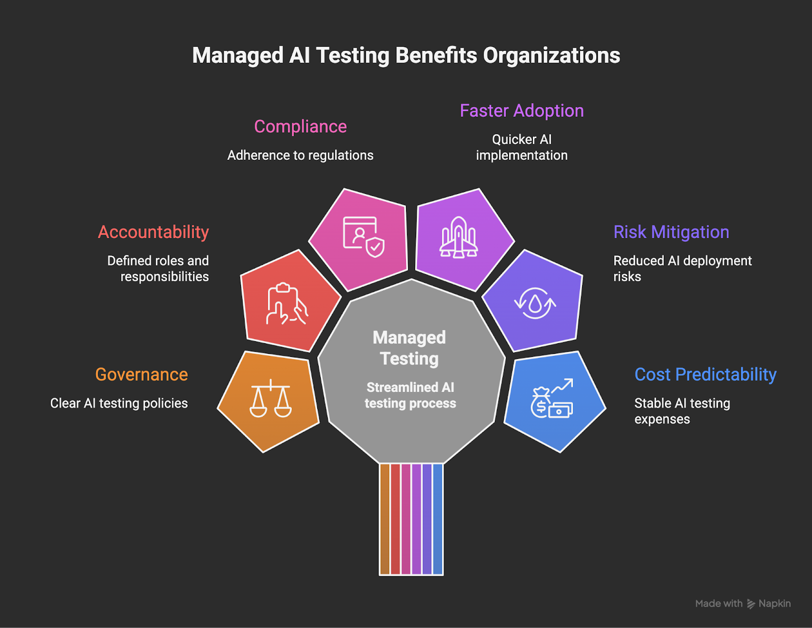 Adopting managed AI testing is not only a focus on tactical decisions but also a strategic move that addresses governance, compliance, speed, risk, and cost at scale.