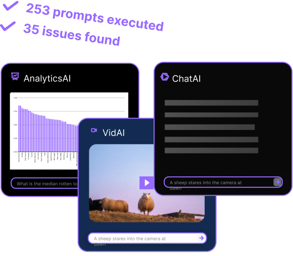 - Test for jailbreaks, bias, misinformation, harmful content across your outputs