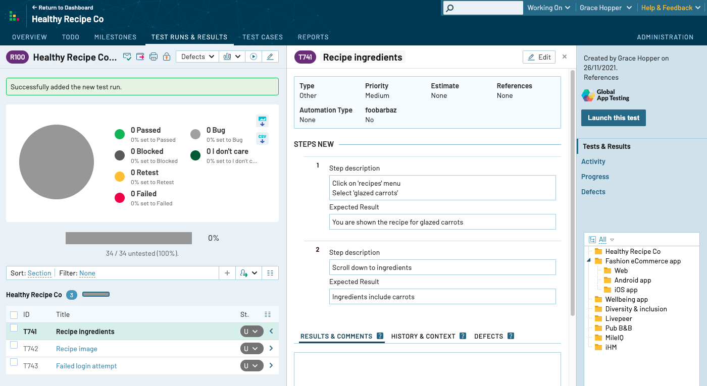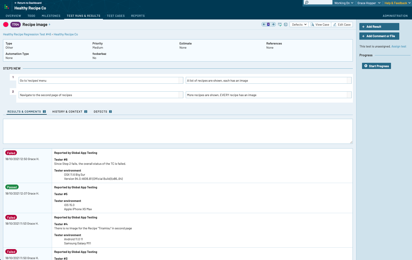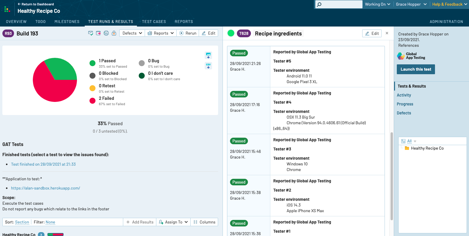 Bring TestRail's sophisticated analytical tools to bear tests conducted via on Global App Testing.