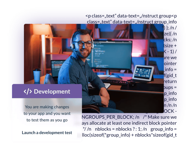 You are making changes to your app and want to test them as you go, you can launch a development test.